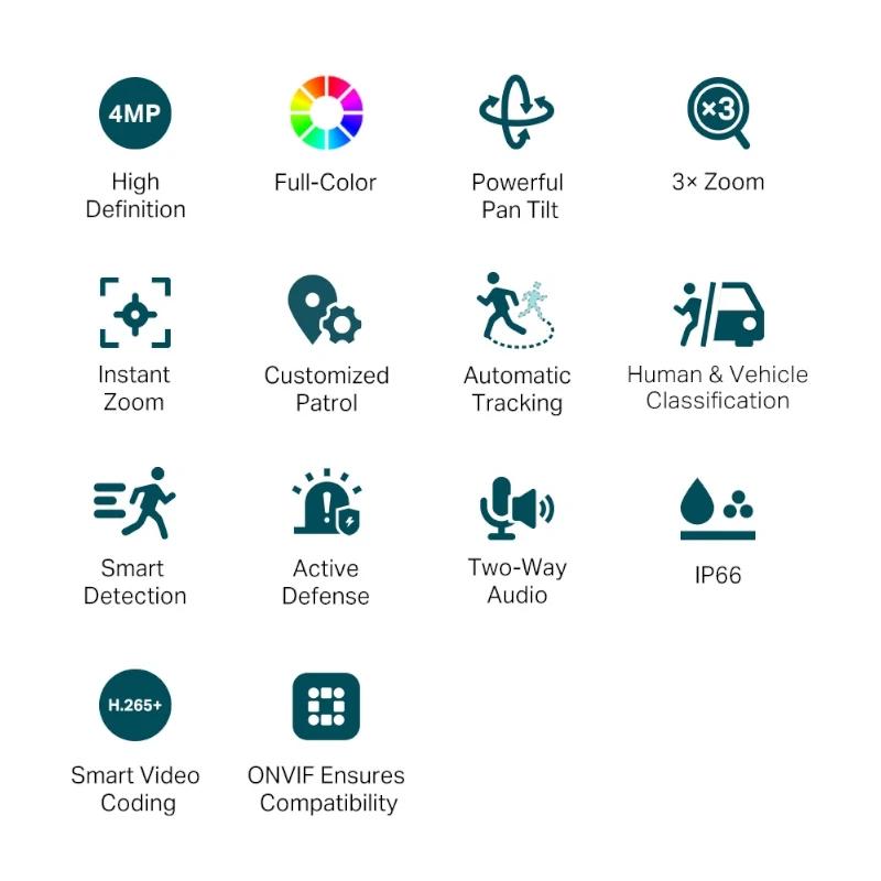 | Características | Red – Protocolo: TCP/IP, UDP, ICMP, HTTP, HTTPS, DHCP, DNS, RTSP, NTP, UPnP UDP, SSL/TLS – ONVIF – API: Interfaz de vídeo en red abierta (perfil S) – Vista en vivo simultánea 3 flujos principales y 3 flujos secundarios – Client: VIGI App, VIGI Security Manager, VIGI NVR, Web – Navegador web: Google Chrome 57 y superiores Firefox 52 y superiores Safari 11 y superiores Microsoft Edge 91 y versiones posteriores – Nube – Seguridad: Protección con contraseña, cifrado HTTPS, filtro de dirección IP, compendio de legislación. – Almacenamiento en red: NAS (NFS, SMB/ CIFS) Alarma y Gestión de Eventos – Evento inteligente: Clasificación de personas y vehículos Detección de intrusión en áreas Detección de cruce de líneas Detección de personas Detección de vehículos Detección de entrada en regiones Detección de salida de regiones Detección de objetos abandonados Detección de retirada de objetos – Evento Básico Detección de movimiento Detección de manipulación de vídeo Excepción (inicio de sesión ilegal) – Alarm Linkage: Grabación de vídeo con tarjeta de memoria, pulsación de mensaje, aviso acústico, luz blanca intermitente – Notificación de salida: Mensaje push Alimentación – Consumo energético: PoE: Clase 0 – Fuente de alimentación: PoE (802.3af/at, clase 0) – IK10 resistente al vandalismo – Protección: IP67, IK10 Dimensiones y peso – 139 x 136 x 107 mm – 0,43 g Contiene – Cámara de red VIGI – Guía de inicio rápido – Accesorios para cables impermeables – Accesorios de montaje |